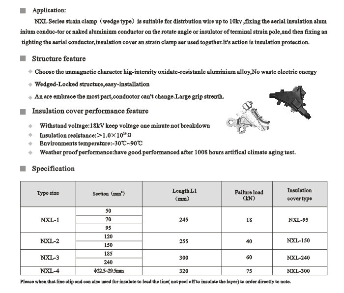 NXL Series aluminium alloy srtain clamp(wedge)and insulation cover