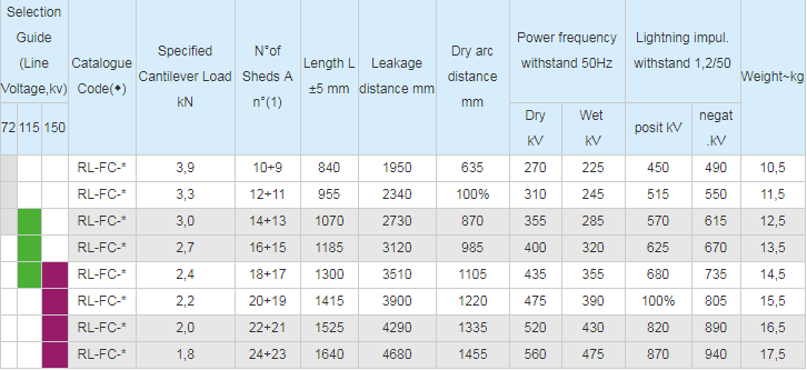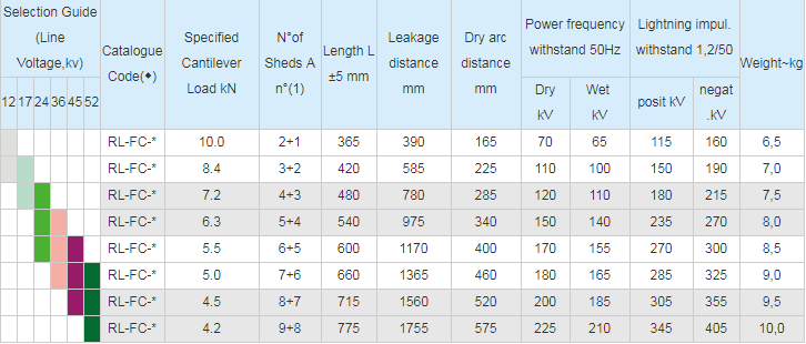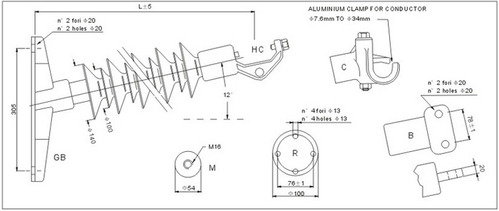 NOTE:Once chosen the insulator that is the most suitable to the characteristics of the line on which you have to install it,in order to obtain the total length of the insulator(L),please select the kind of fitting end you have to use and refer to the following table: